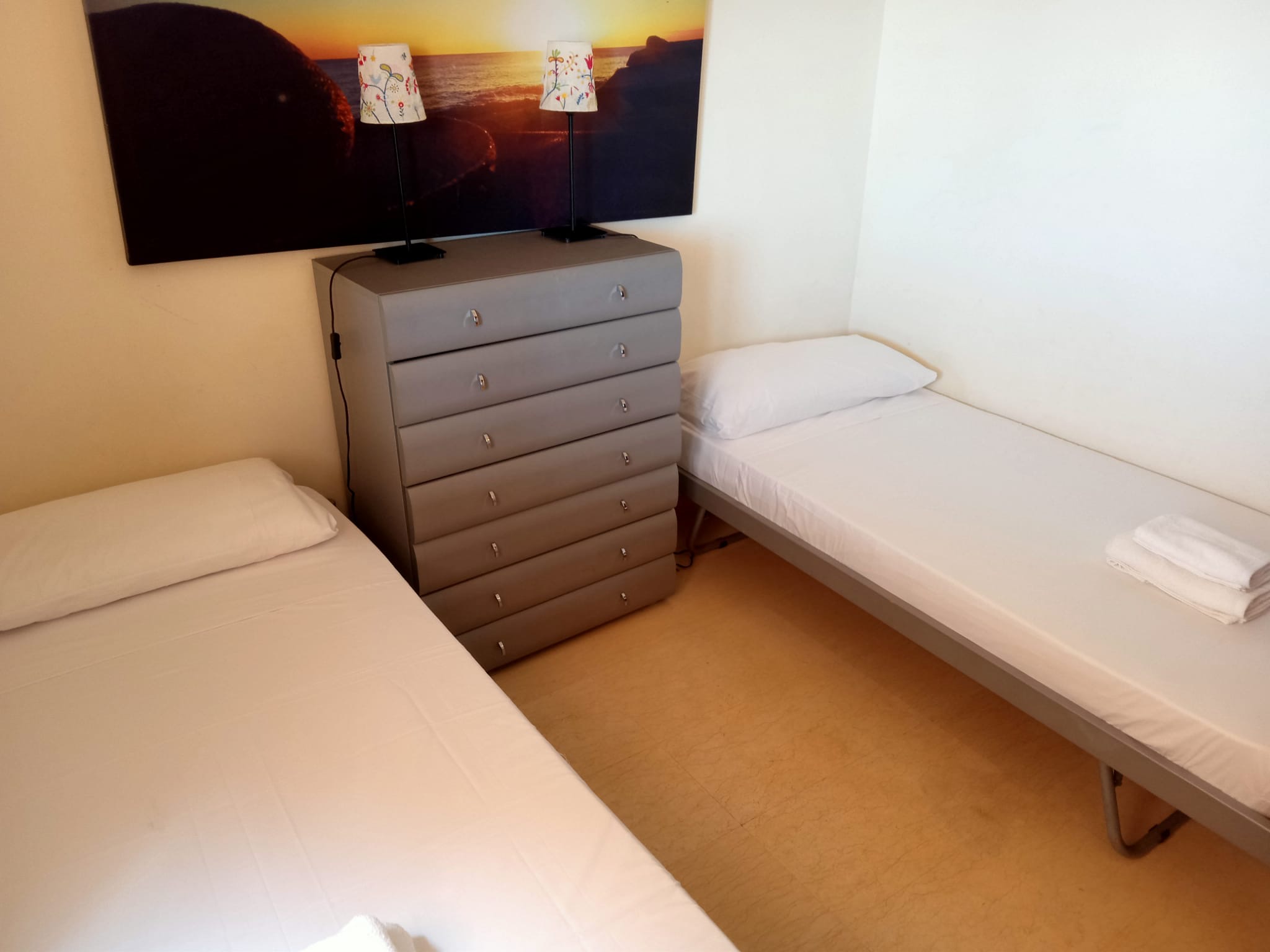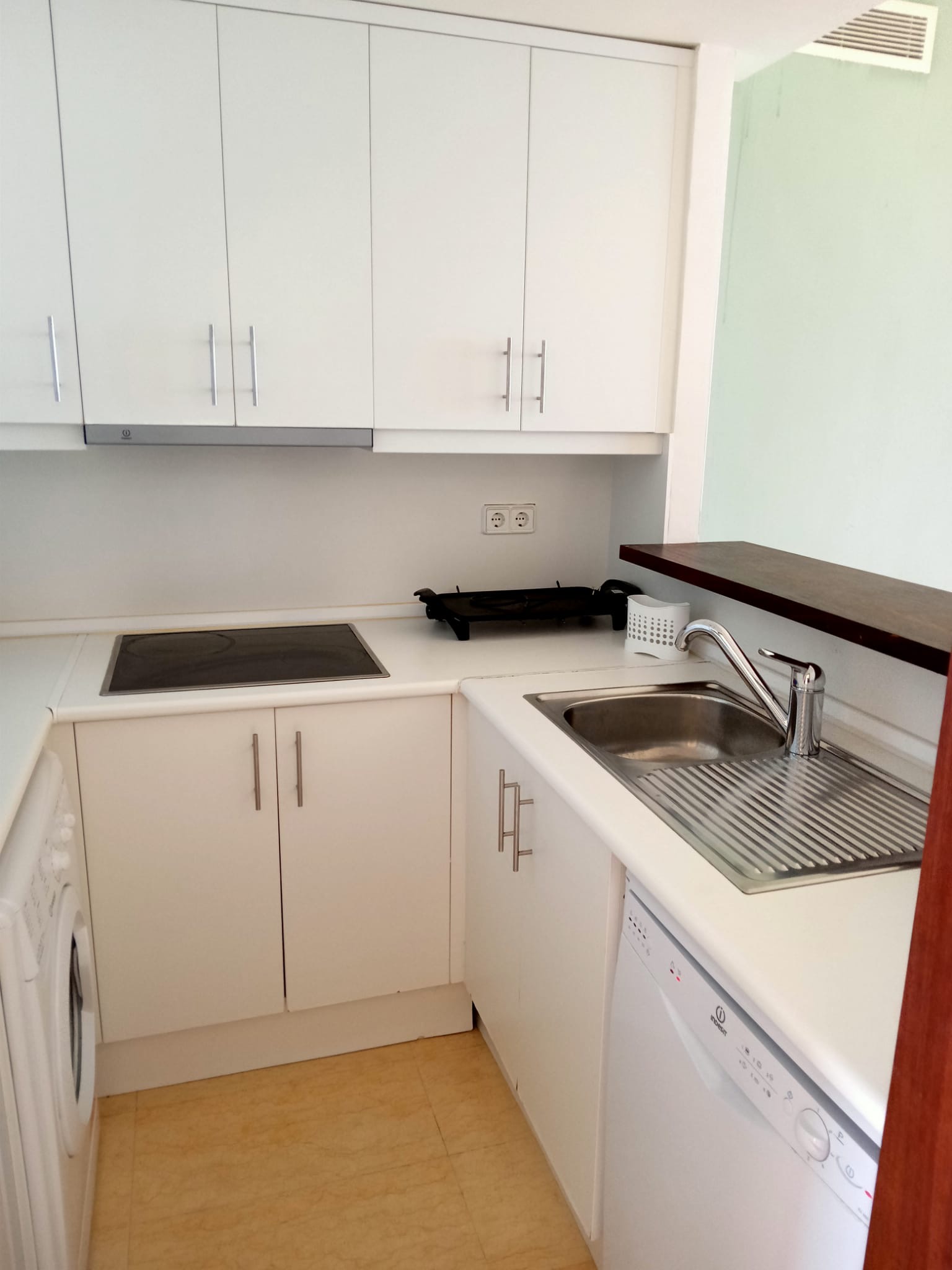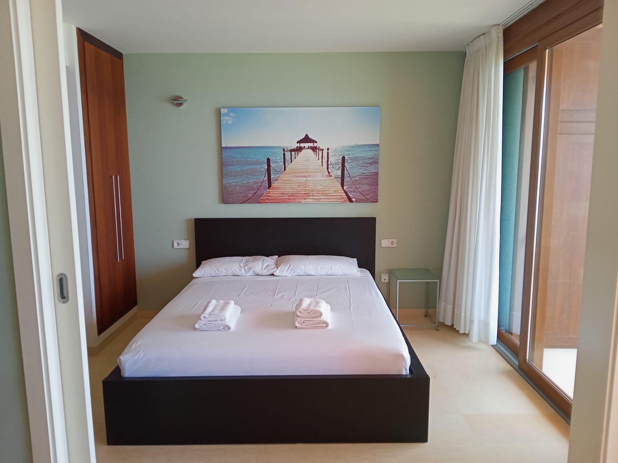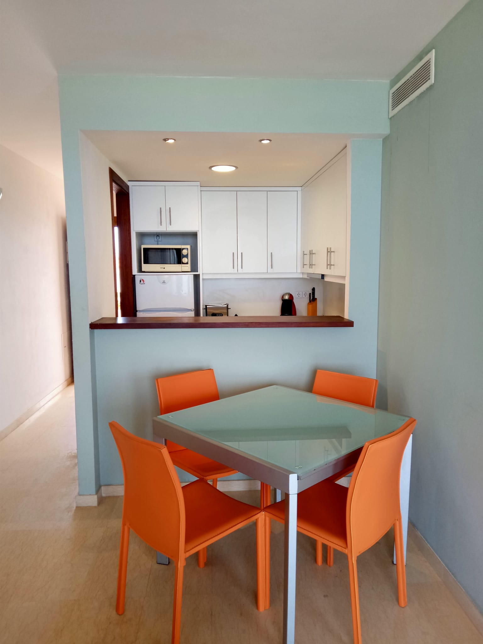 We present for sale a beautiful apartment located in one of Ibiza’s most sought-after areas: Playa d’en Bossa, directly on the seafront. The property has a well-distributed surface of 62 m², featuring 2 bedrooms, 1 full bathroom, 1 guest toilet, and a bright living area with open-plan kitchen.